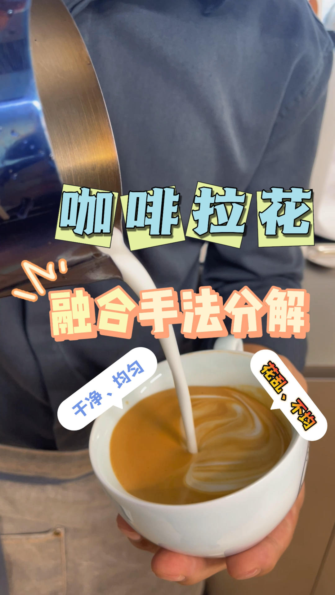 咖啡拉花融合很关键😎了解下融合的手法、融合做好了喝起来味道均匀、也非常有利做出精致好看的拉花🤗