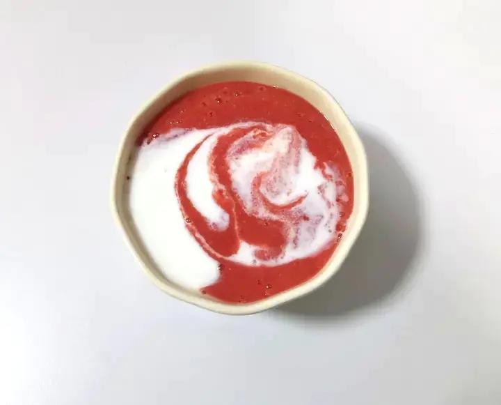 把小番茄打成糊糊汁儿,再拌酸奶,还不错耶~这酸奶本身是甜的,和微酸的小番茄综合在一起刚刚好,主要不太爱吃小番...