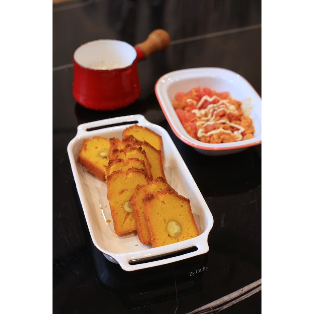 超能妈妈养成记 No.449 早餐打卡 2019.10.23 “南瓜栗子磅蛋糕”+“番茄金枪鱼柚子沙拉”+“牛奶炖苹果”...
