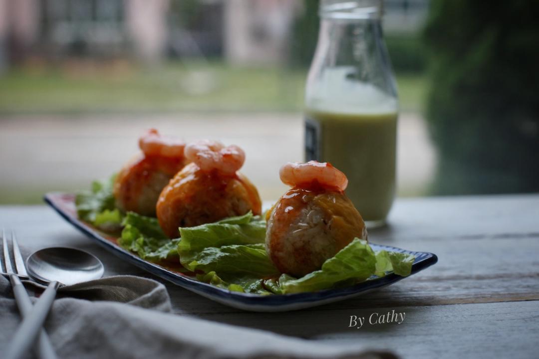 No .245 早餐打卡2017.11.08 “泰式鲜虾肉松烤饭团”+牛油果益力多”。