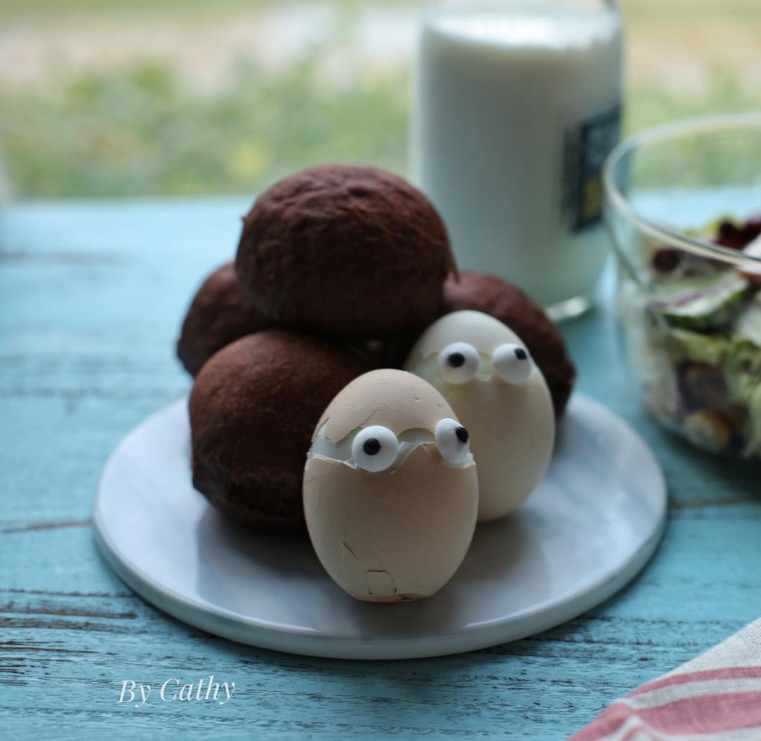 No .241 早餐打卡2017.11.01 “可可奶油红豆小餐包”+“万圣节鸡蛋木乃伊”+“烟熏鸡...