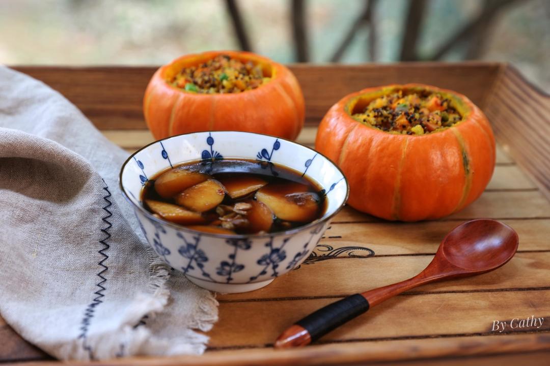 No .289 早餐打卡2018.01.01 “南瓜藜麦盅”+“桃子红糖茉莉花糖水”。