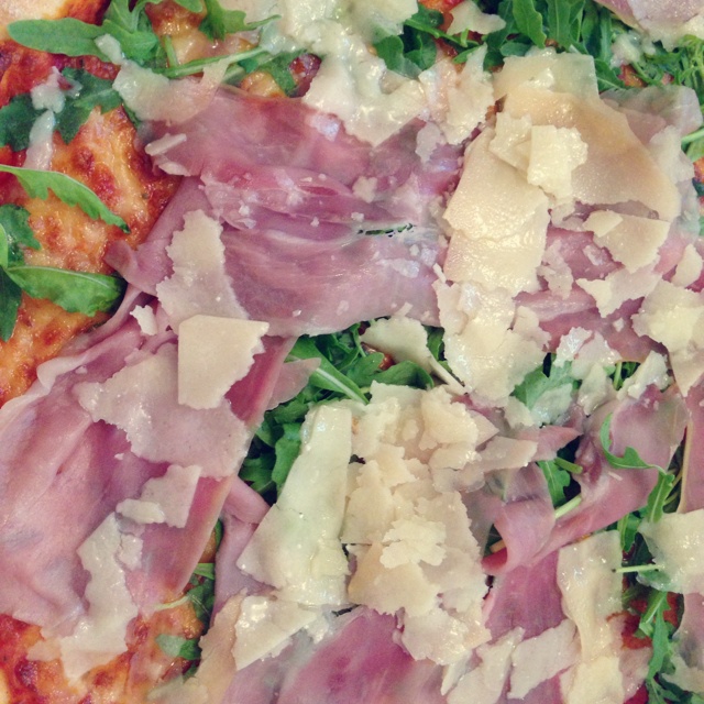 昨天外卖的pizza,意大利小伙伴推荐的意大利餐厅,火腿生吃很腥不过这样吃很好吃哦,他家提拉...