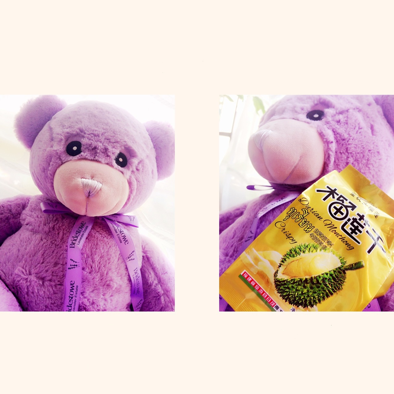 收到轩妈寄来的香香的薰衣草小熊和榴莲干了,感觉自己霎时变得和少女...