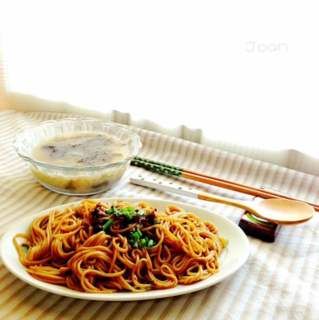 香菇肉酱拌面+燕皮紫菜汤,一个人的午餐也...