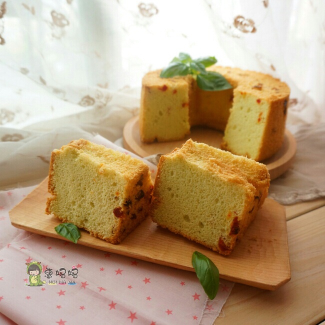 番茄干戚风~我放了2小勺前两天的青酱进去!(#゚Д゚)