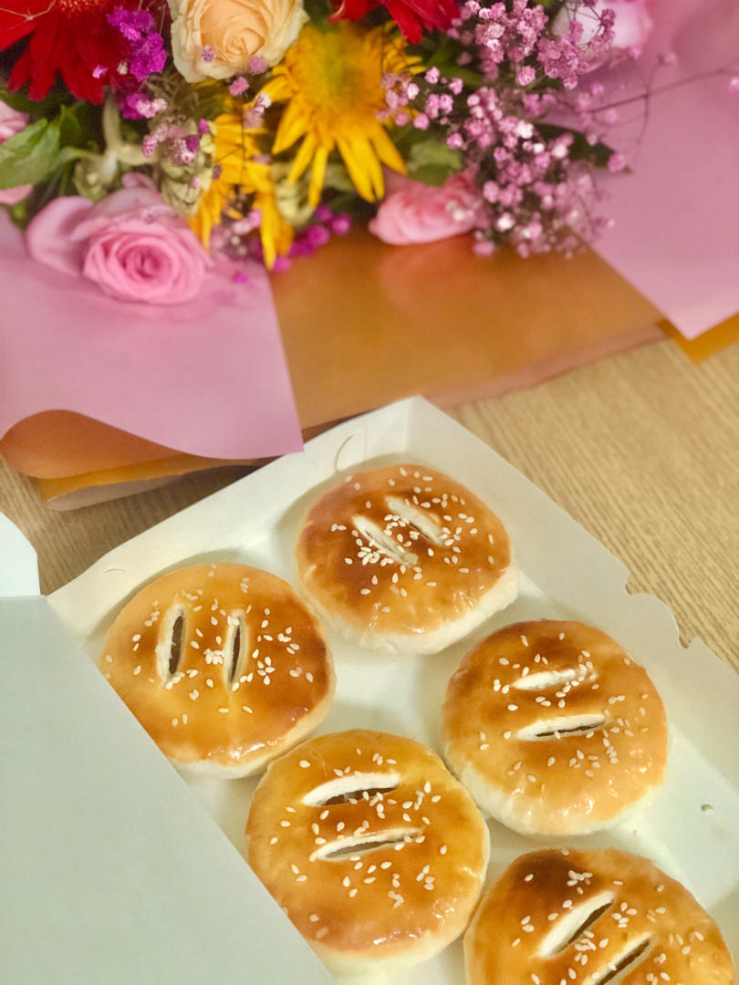 用椰子油代替猪油的,味道很🉑️!饼皮与馅心都散发着浓浓的椰子味道!烘烤过程满屋飘香,特别治愈~