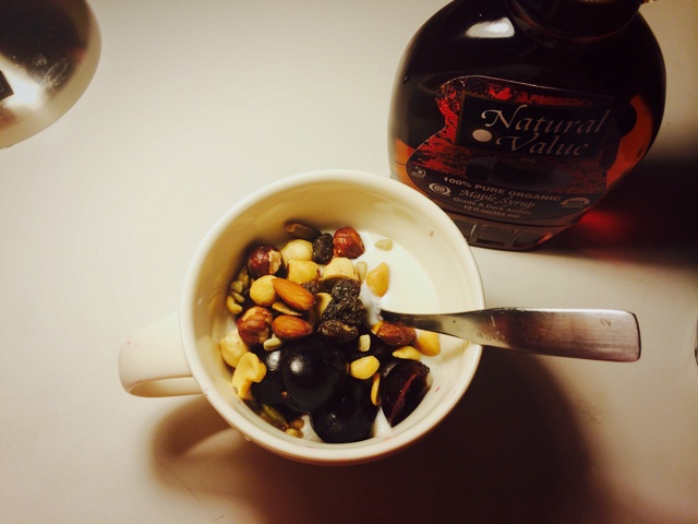 算宵夜咯,cherry,nuts,maple syrup~