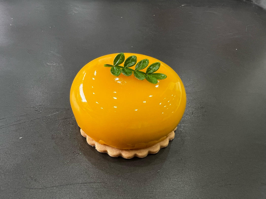 饼干底,芒果慕斯体,芒果慕斯淋面