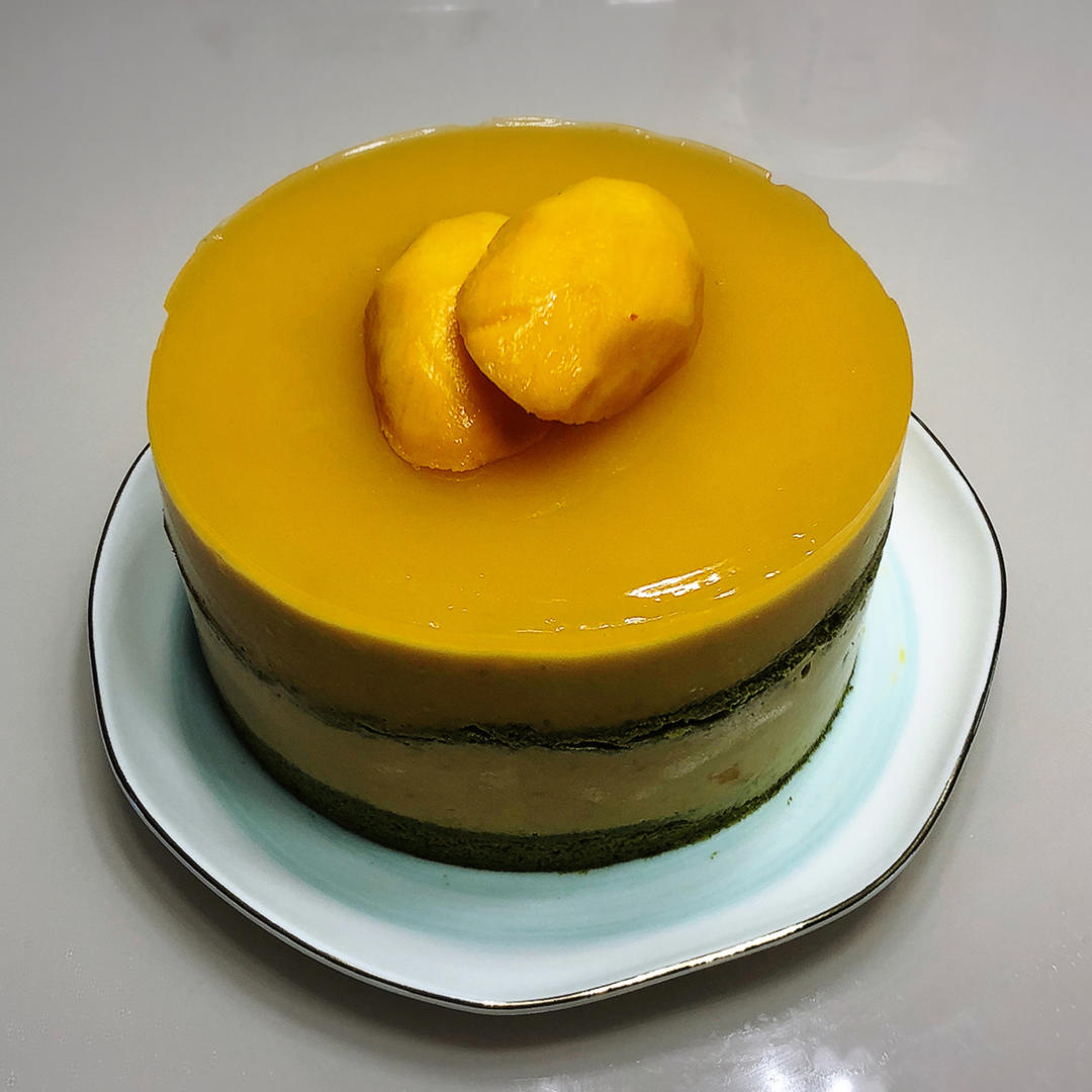 古早蛋糕可以托底做慕斯的呀~抹茶芒果流心慕斯