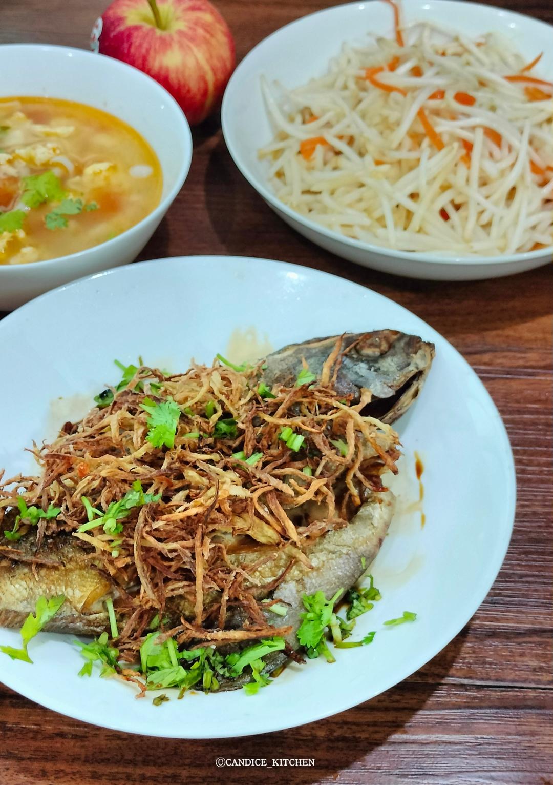 第一次煎鱼,想不到成功了,看起来还是蛮简单的,总结经验就是一定要小火慢煎。