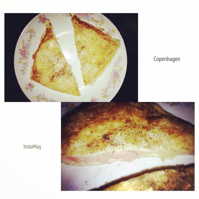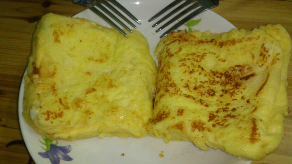 只夹了芝士片,用牛奶加鸡蛋沾了煎的,味儿很不错!