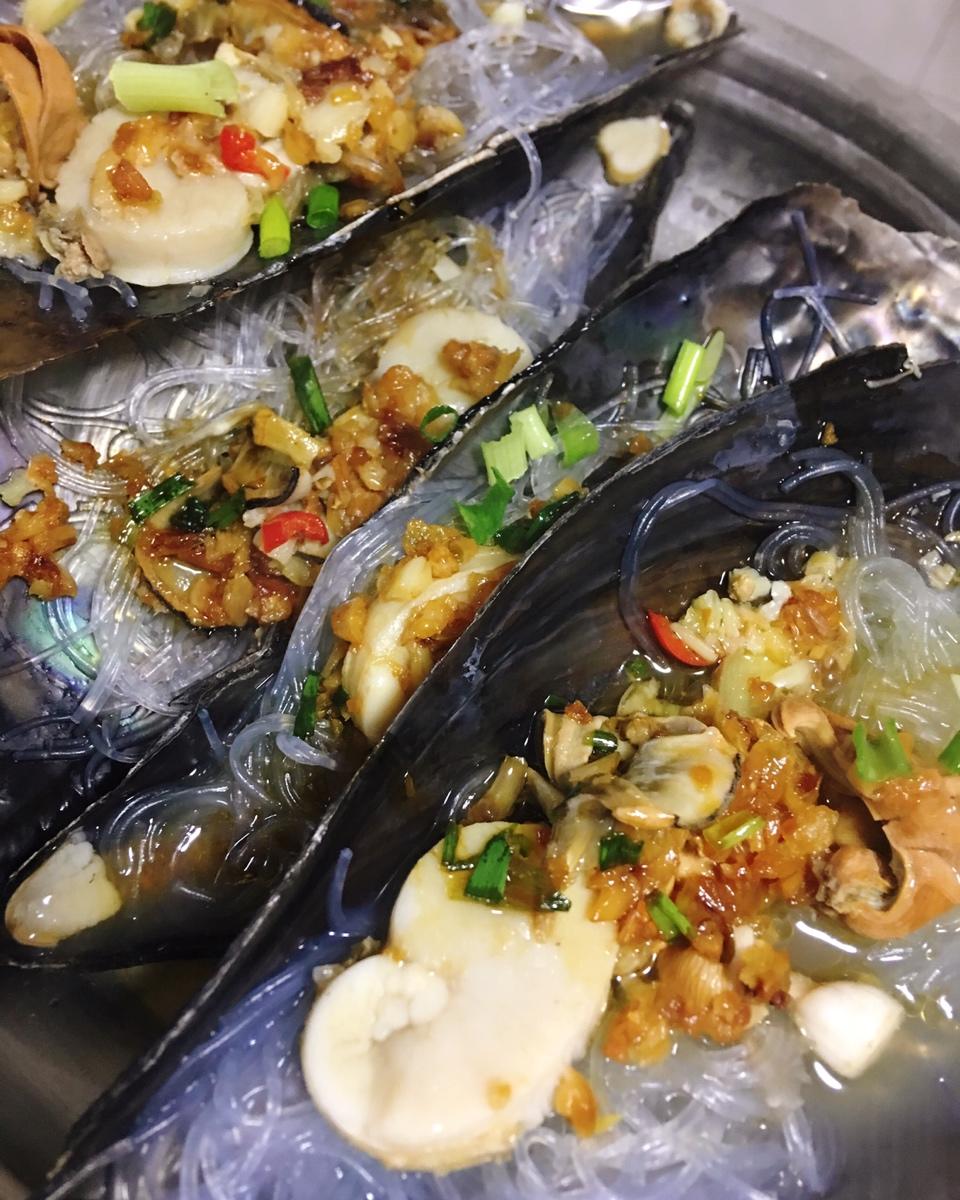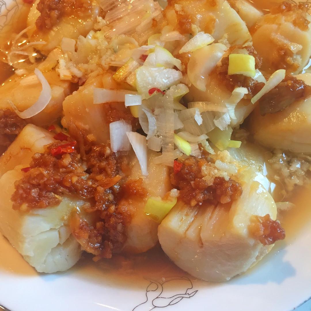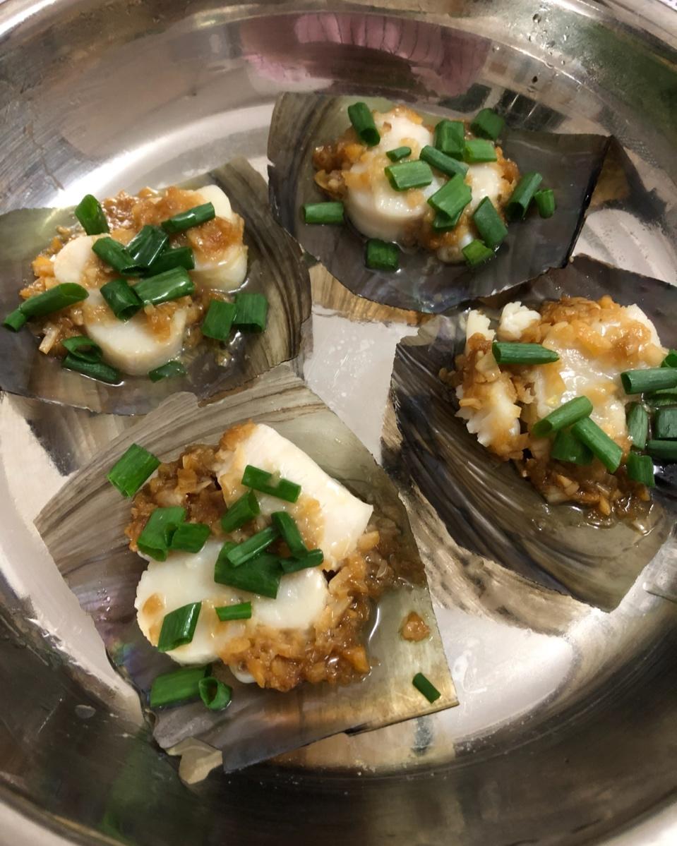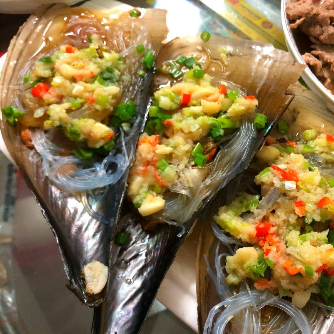 买的带子肉,不带壳的,直接跟粉丝一起蒸,很好吃。