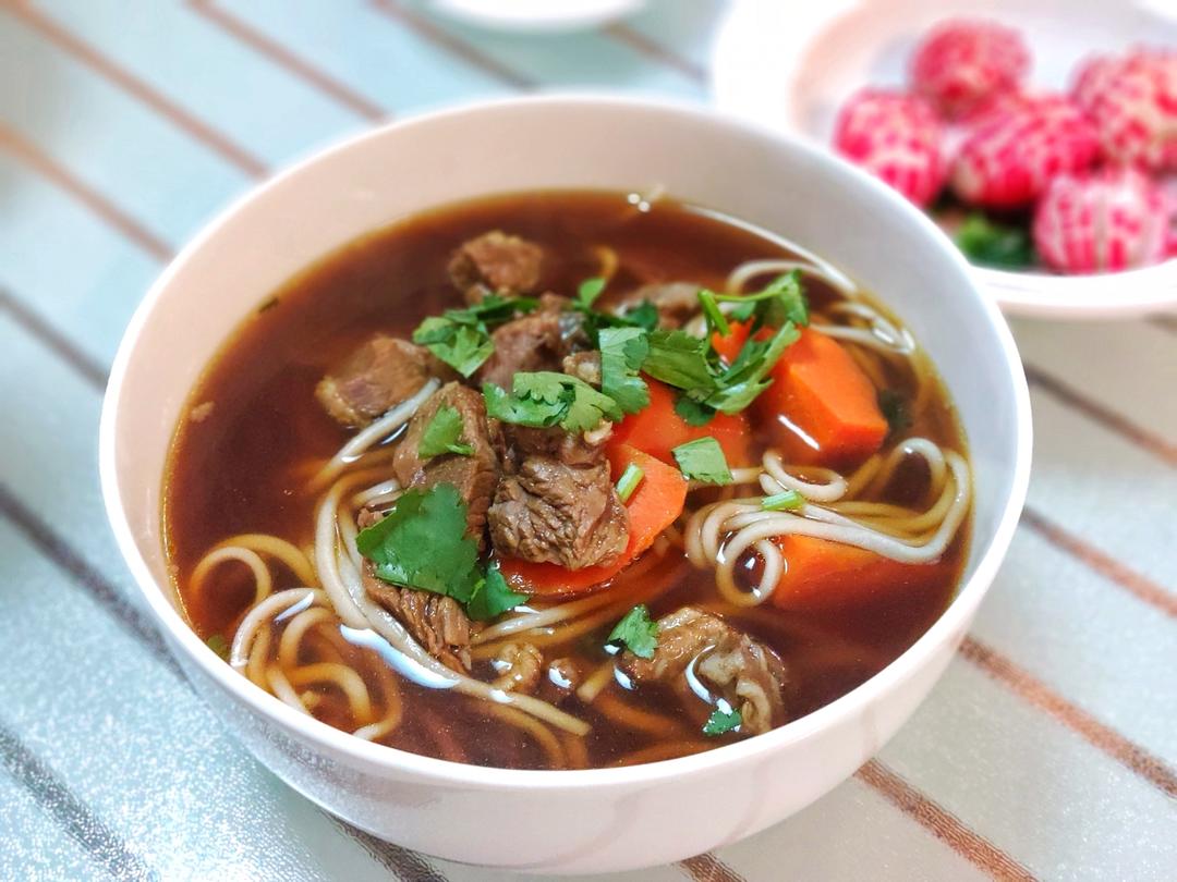羊肉荞面、糖醋水萝卜。