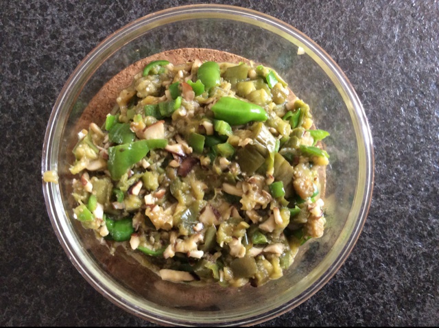 青椒一定要切得碎一点啊,软软的茄子和香菇里面,大块儿的青椒有些扫兴+_+另外,由于时间紧急,天气也热,没放凉茄子,手处理...