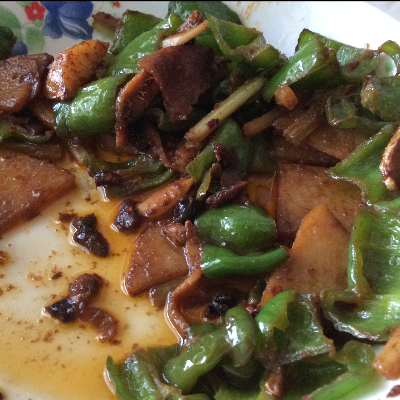 已经吃完啦!青椒放晚了,也许可以先用水煮一下