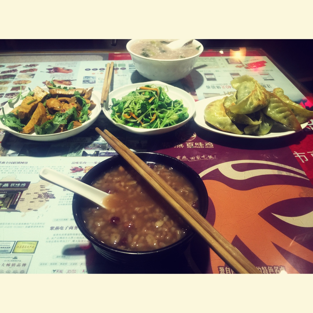 连着开两会,却不在一个地点,在外面弄点小粥喝喝,也挺可口的~凉拌素鸡,清炒绿豆芽,青菜香菇煎饺,八宝粥~除了煎饺油大了点...
