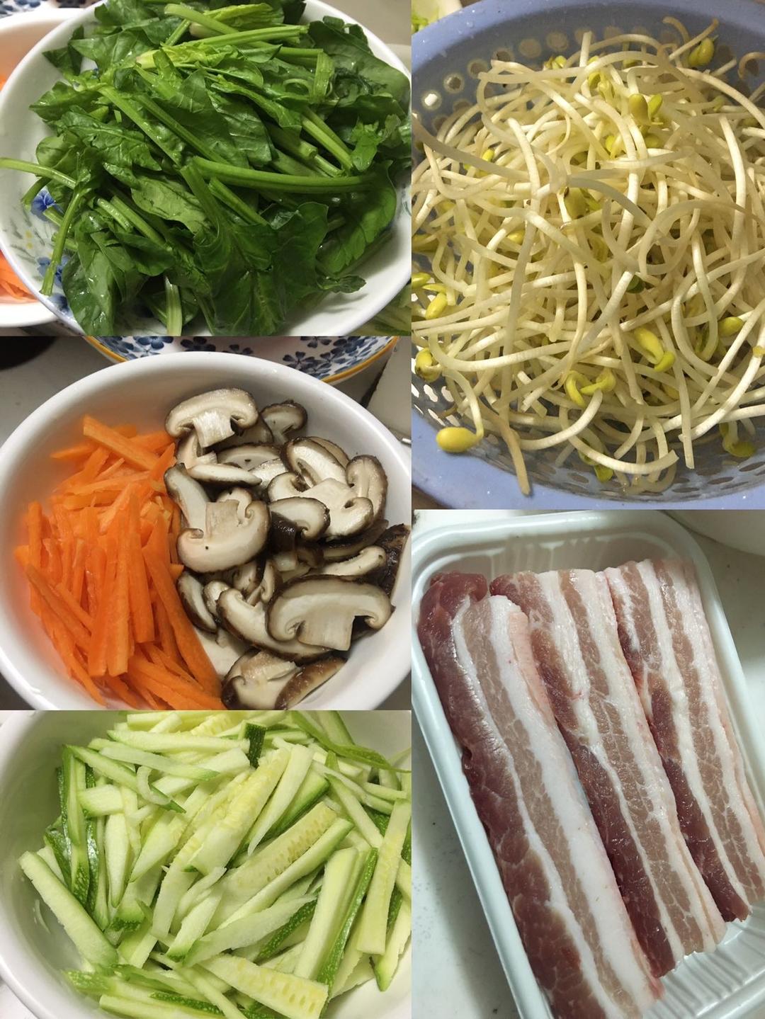 我家爱吃肉,买了五花肉煎香,鸡蛋切小块,酱料买了海天拌饭酱,好好吃,只是太费功夫了,做得有点多都吃完。。。
