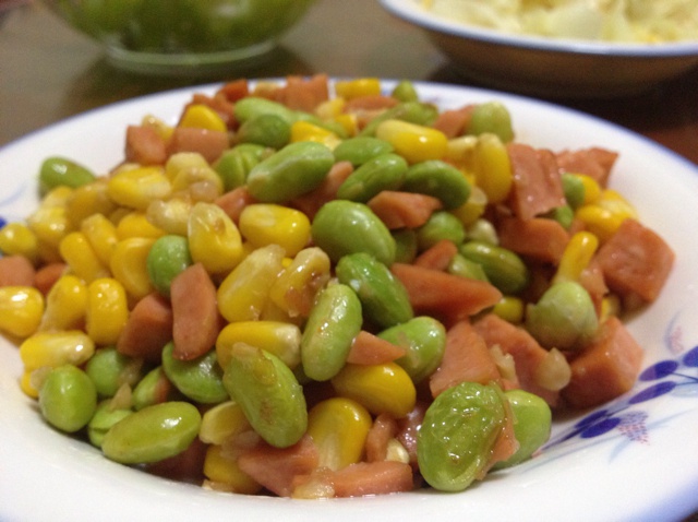 用毛豆代替了豌豆,加了半勺生抽,鲜美~