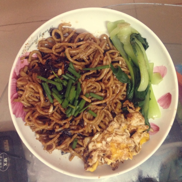 葱油拌面,用的面粗了点,吃得会有些腻,下次要用细一点的面