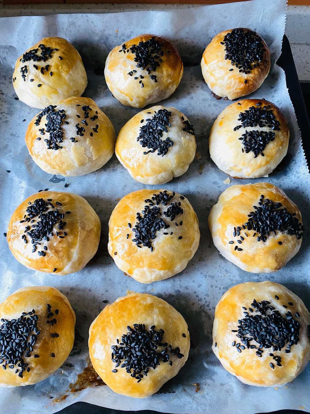 黑芝麻的鲜肉馅儿,白芝麻的加了榨菜!