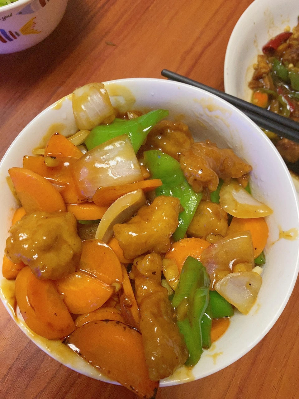 苹果版溜肉段,不喜欢青椒的可以试试,味道很惊艳,没有不和谐。