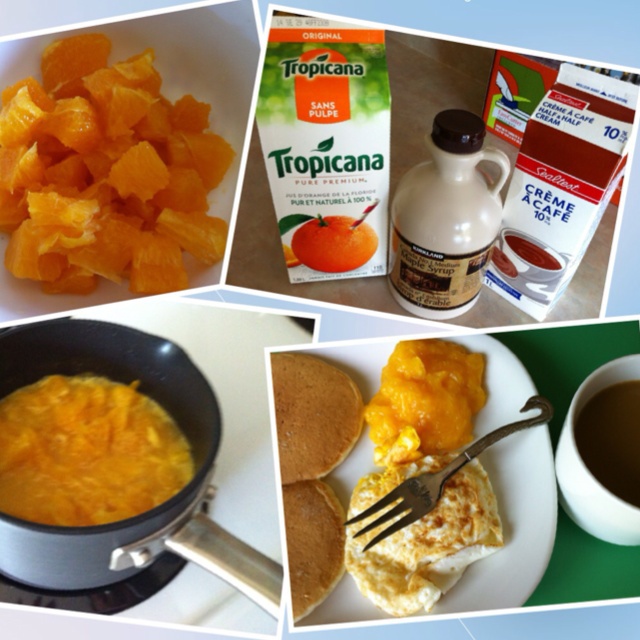 自制橙酱,新鲜橙子加橙汁、枫叶糖浆、cream熬开,加玉米淀粉勾芡,晾凉抹面包吃。觉得没有上次做的树莓酱好吃,做法差不多...