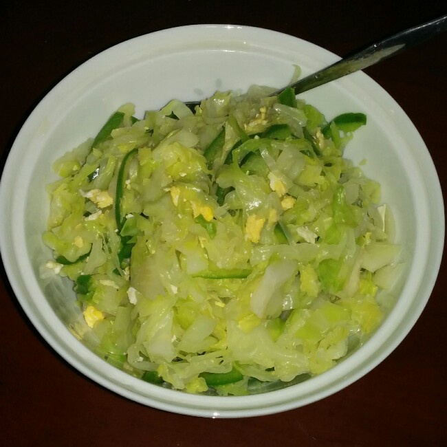 一颗小卷心菜,一个鸡蛋,一个青椒,一勺食用油