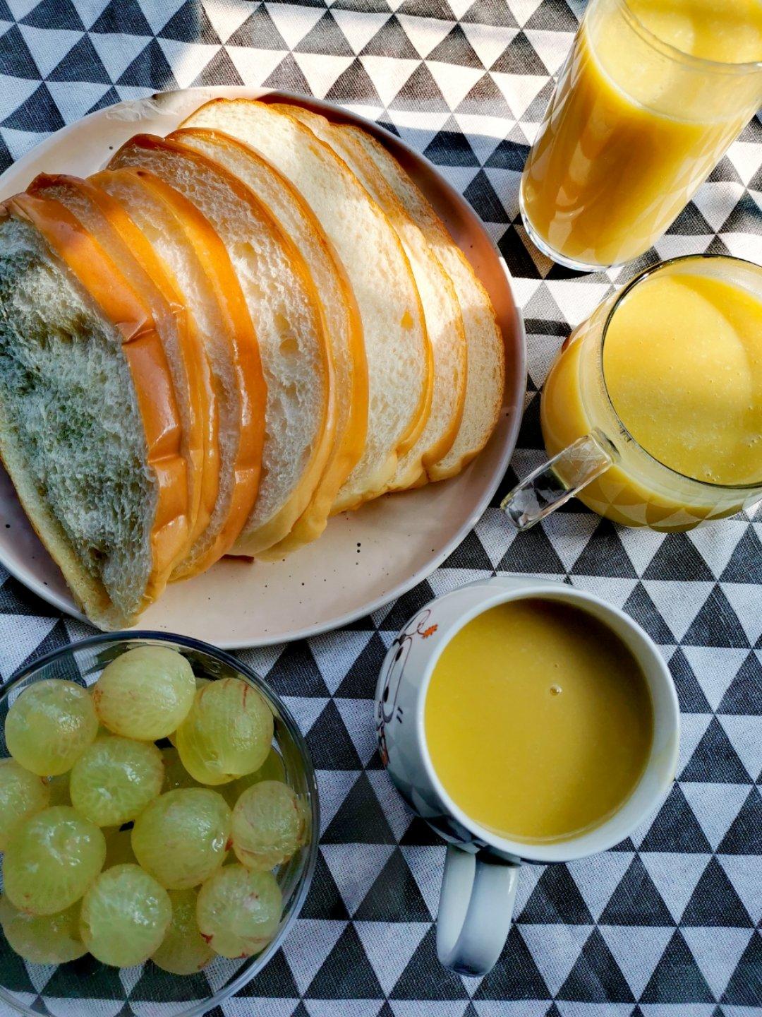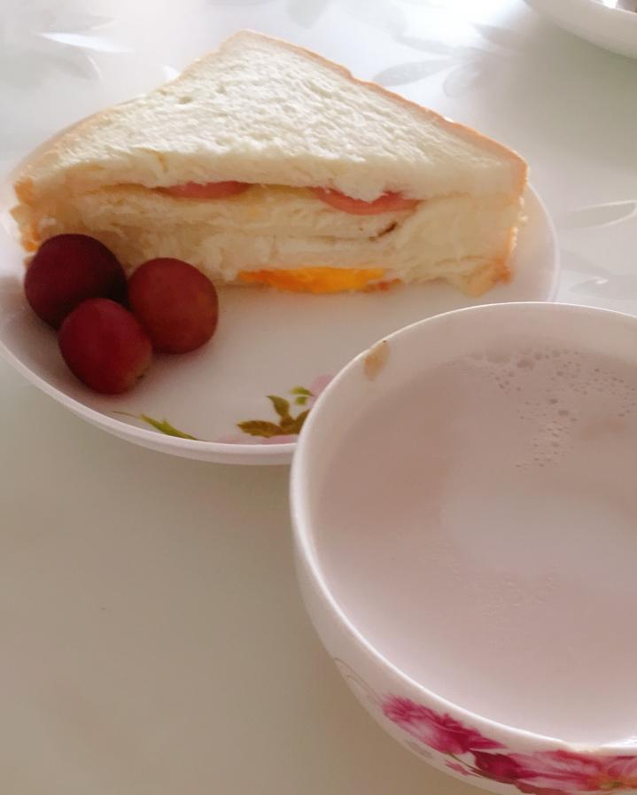 自制三明治(鸡蛋火腿肉松)➕红提➕花生豆浆