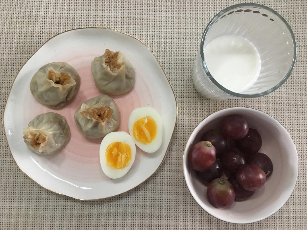 糯米烧卖 煮鸡蛋 红提 牛奶