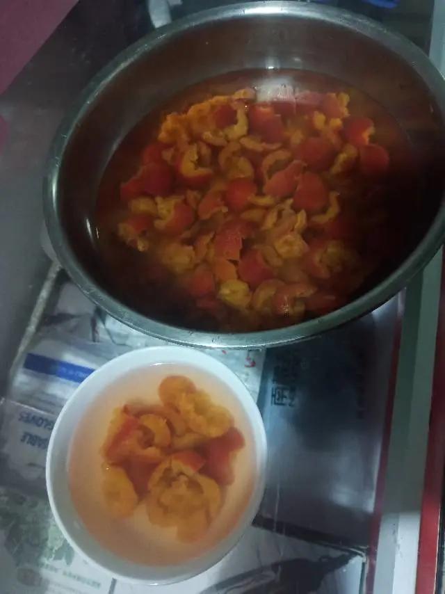 没有去核器,用水果刀切开一半挖出来的,开始有些酸,过两天尝尝甜度如何😃
