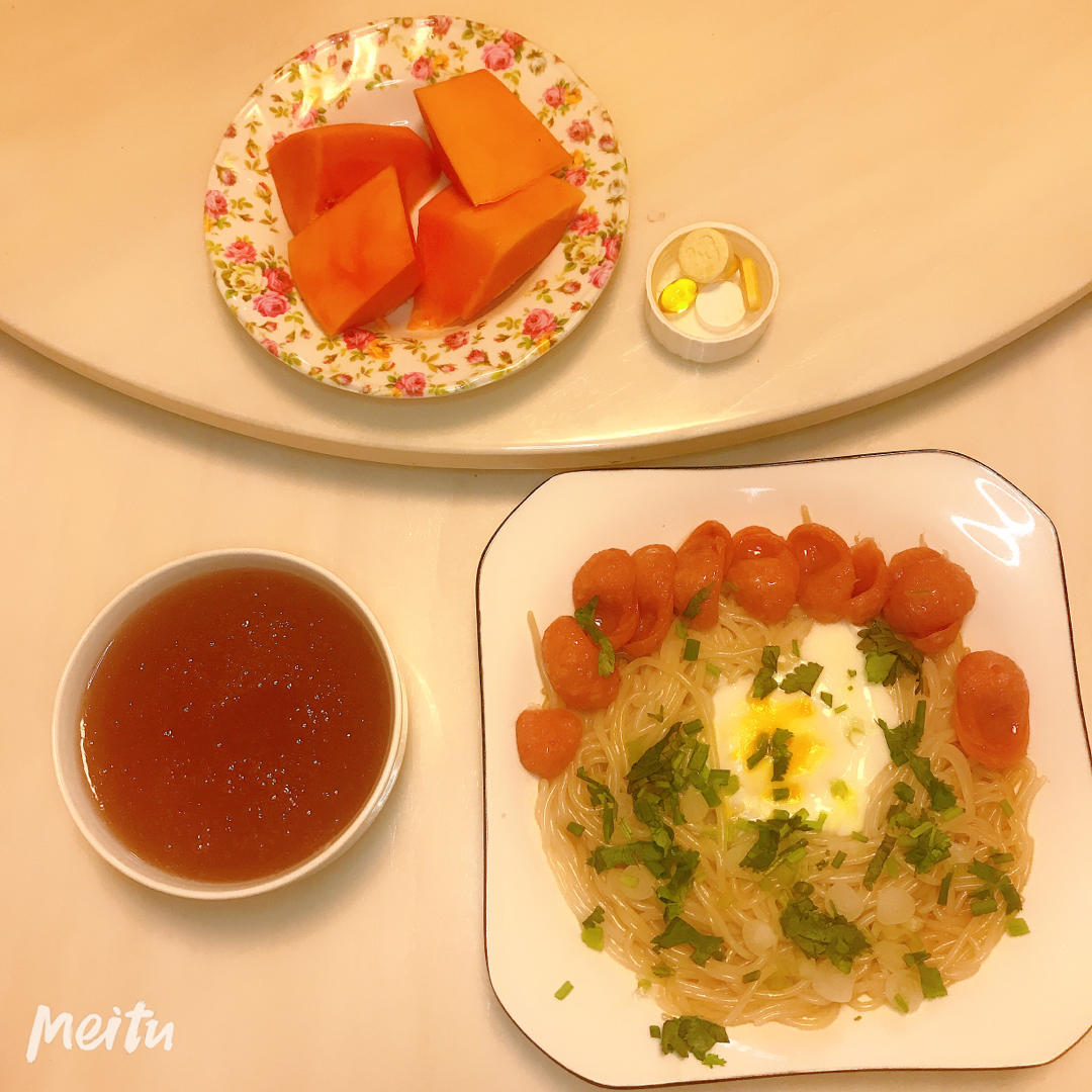 【一起做早餐】土茯苓羹+蒸桂林米粉+水果木瓜+葆婴营养第四餐