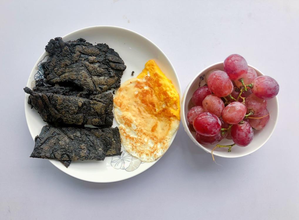 这不是什么黑暗料理,这是黑豆黑芝麻和面粉做的煎饼🍳哈哈哈,争取下次不...