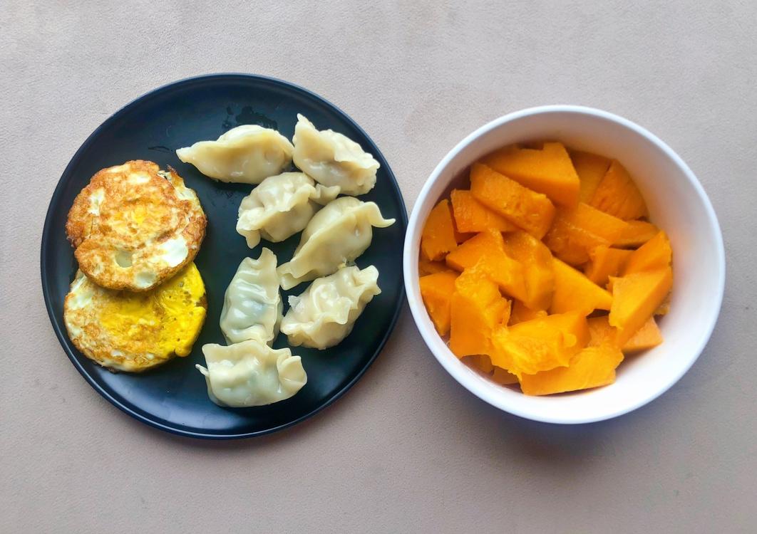 鸡胸肉胡萝卜饺子,芒果和腰果😜ོ