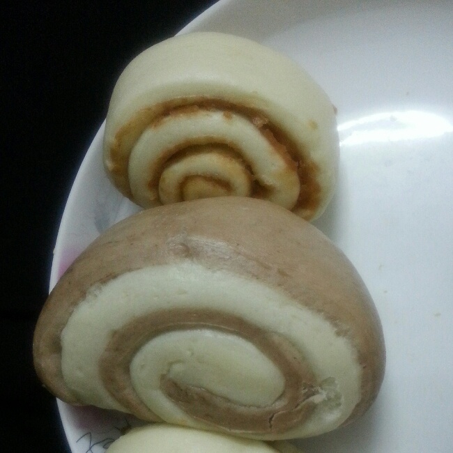 双色大馒头跟花生酱小花卷>_<揉面好难整型好难、已尽了