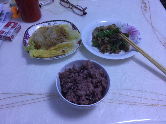 蒜蓉娃娃菜,辣椒炒羊肉,红豆米饭。加油,每天都要开开心心的。
