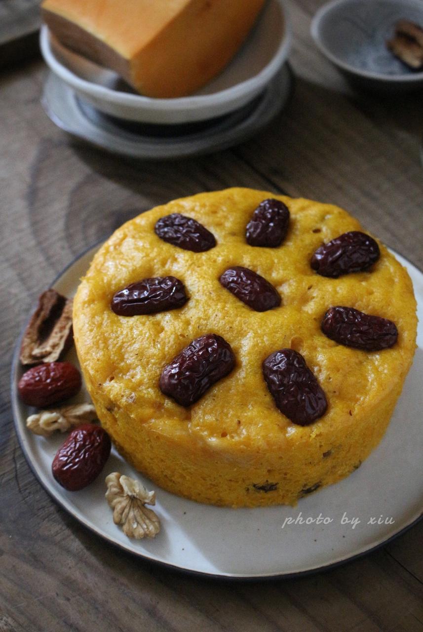 南瓜发糕,南瓜小米粥~阴雨天也要好心情😊