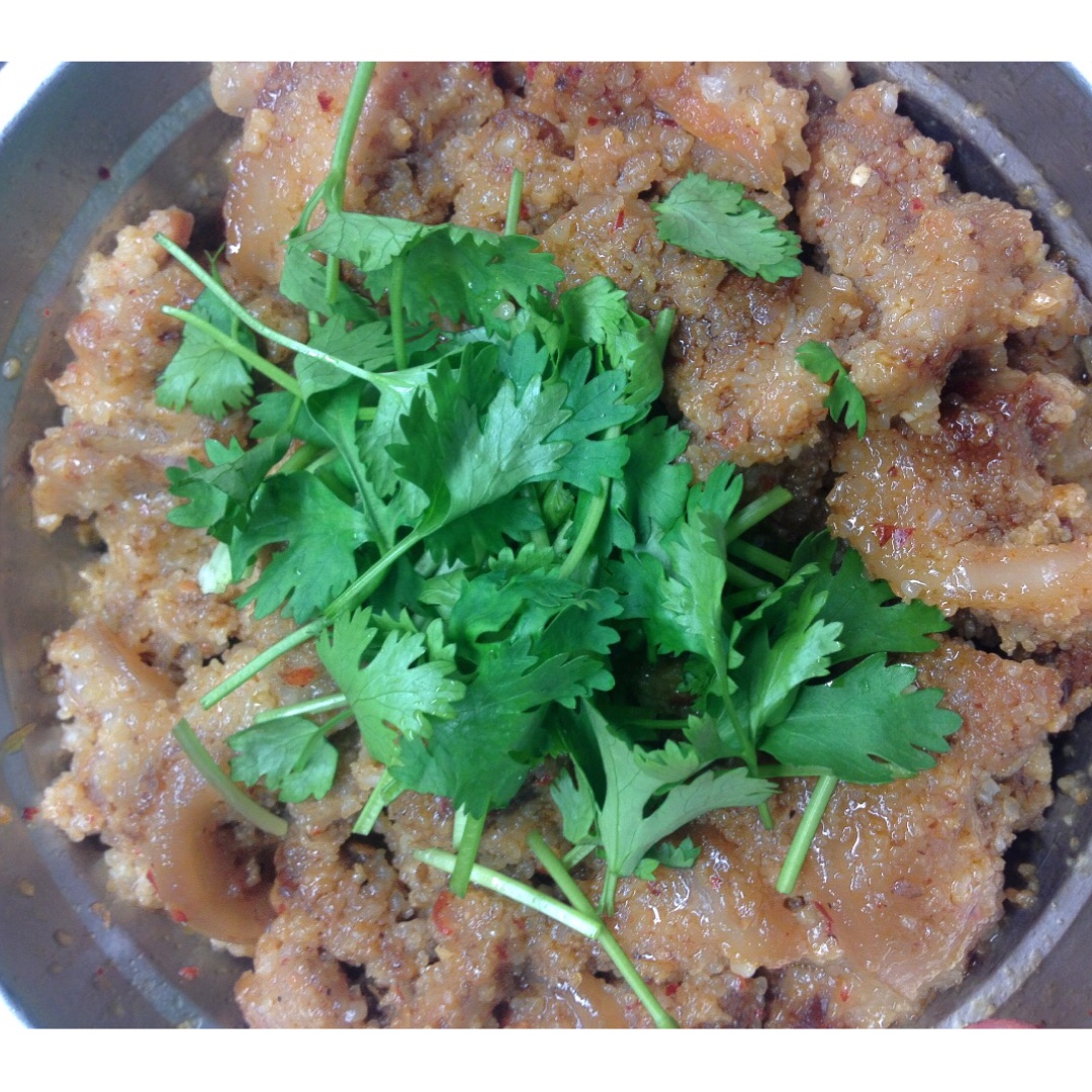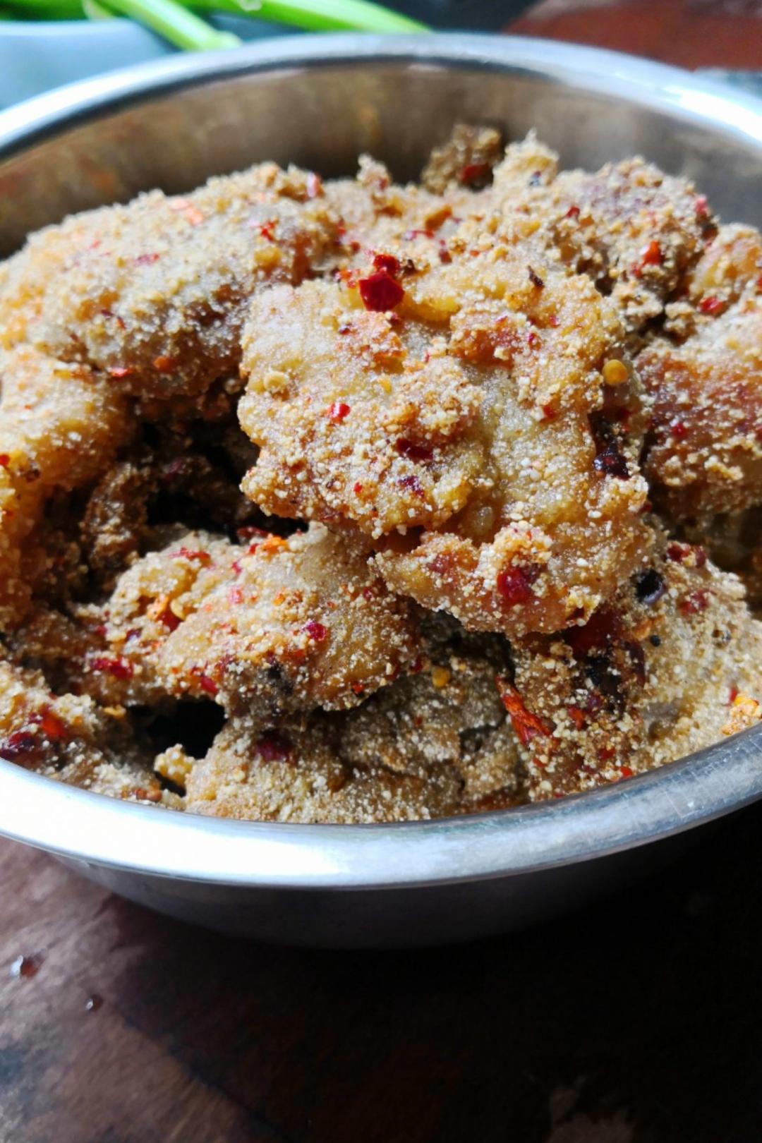 自己打的米粉,做出来的蒸肉果然超级好吃。