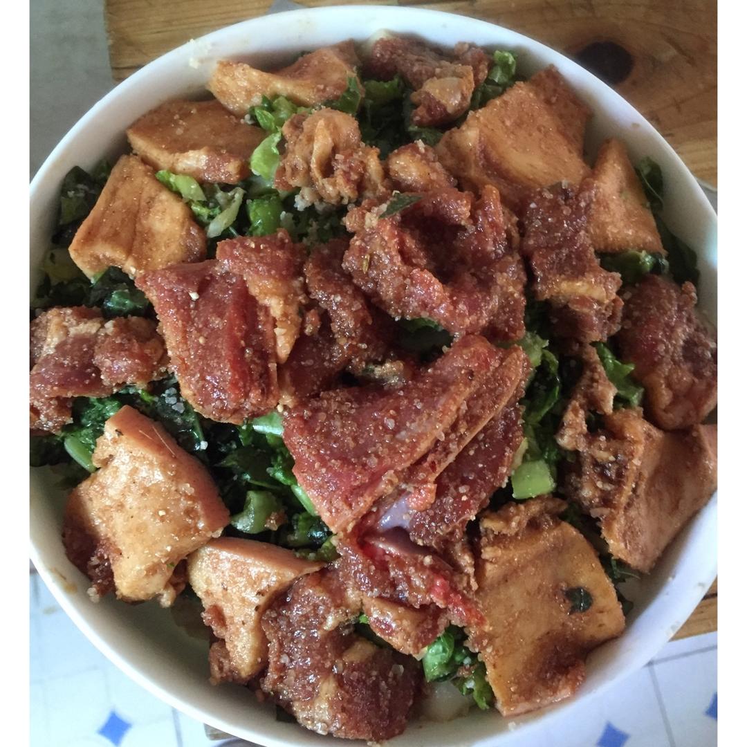 2.五花肉叫老板切小块(早点去菜市场老板就有时间帮忙切块,肥肉单独切下来)