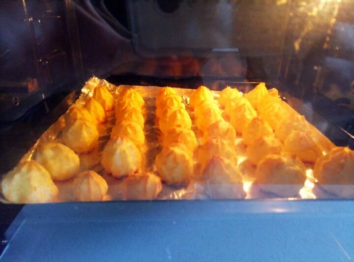 自己动手做了泡芙之后才第一次知道泡芙应该是酥脆的……刚烤好之后挤上卡仕达酱非常非常好吃,就是没法...