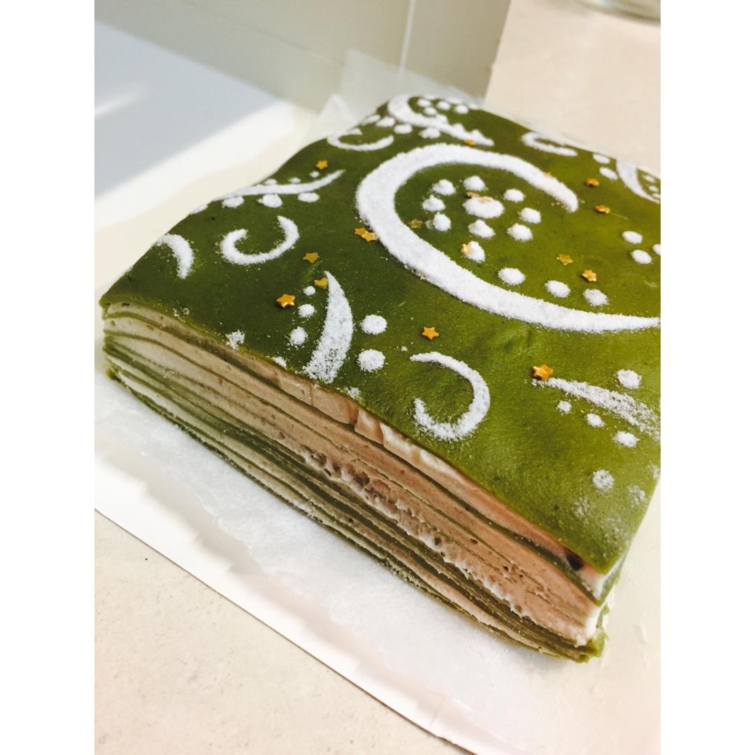按照君之做班戟的房子自己改良的抹茶红豆千层,试着做了方的,看起来小清新一点