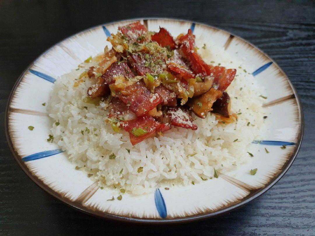 黄油香菇培根盖饭.
