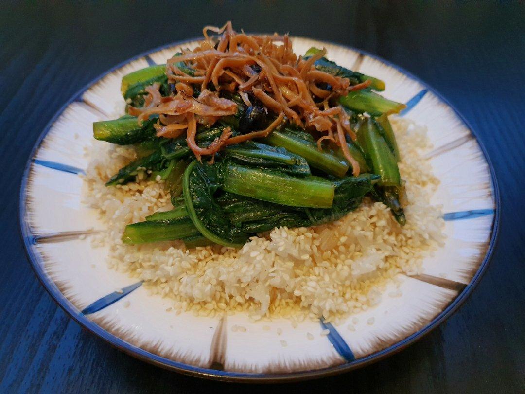 丁香鱼凉拌油麦菜盖饭.