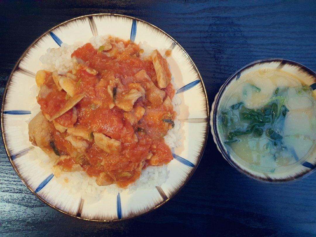 番茄烧猪肉盖饭➕蔬菜味噌汤