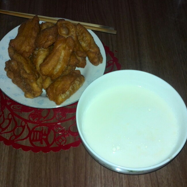 重温儿时最喜欢的早餐,油条泡牛奶。ps:原来炸油条最关键的是最开始要让它不停的在油锅里翻滚...