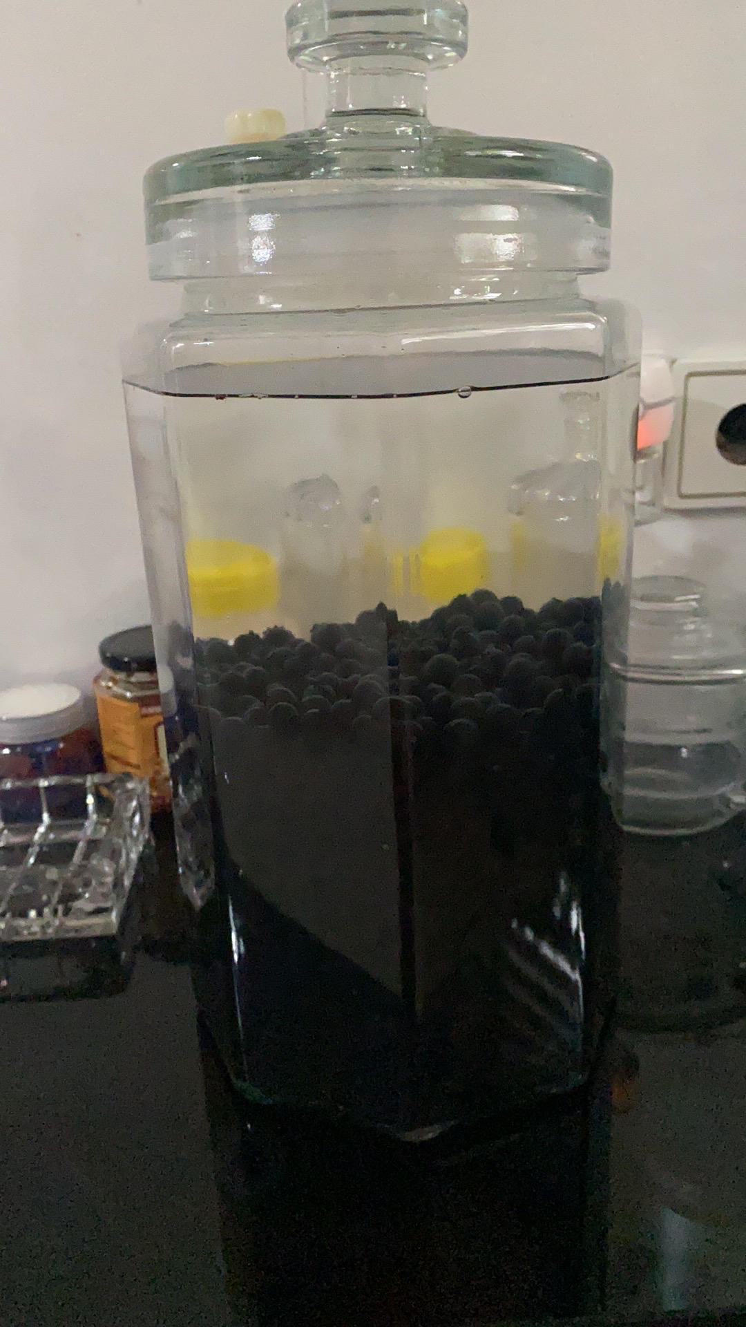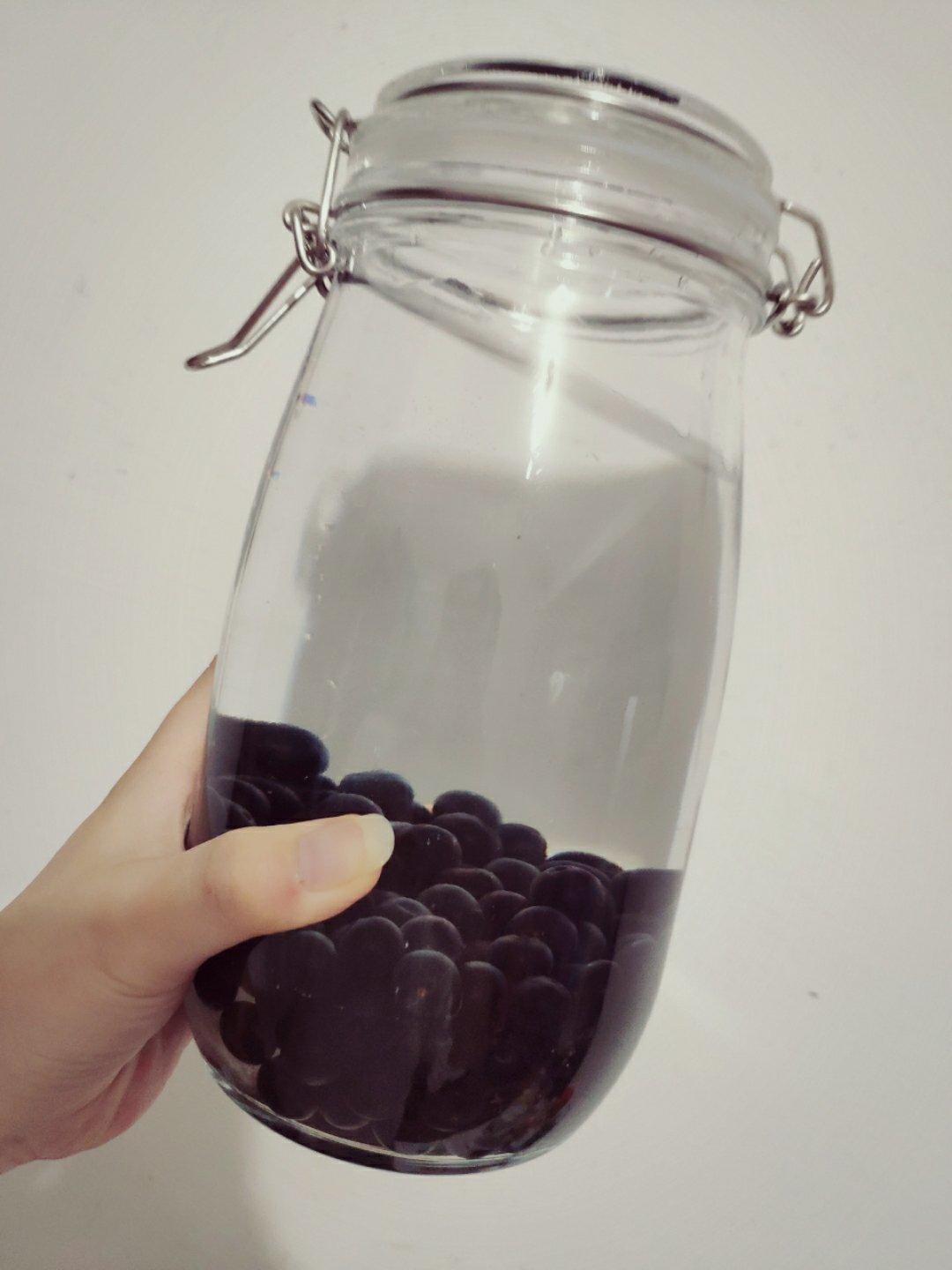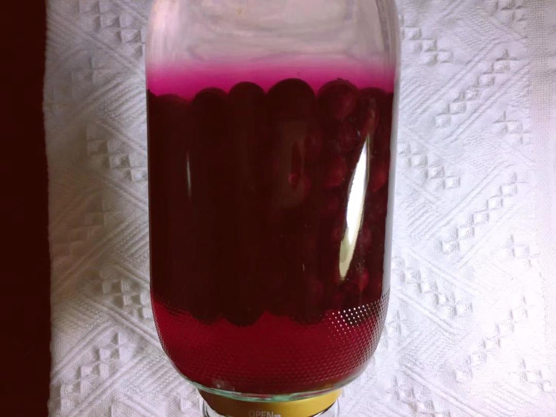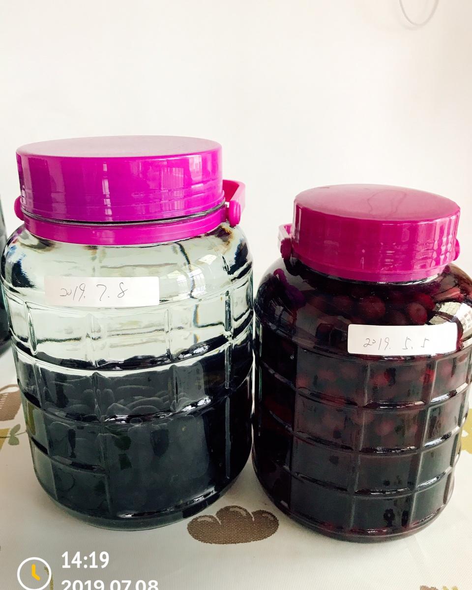 今天开封了几个月前泡的蓝莓酒,味道很不错