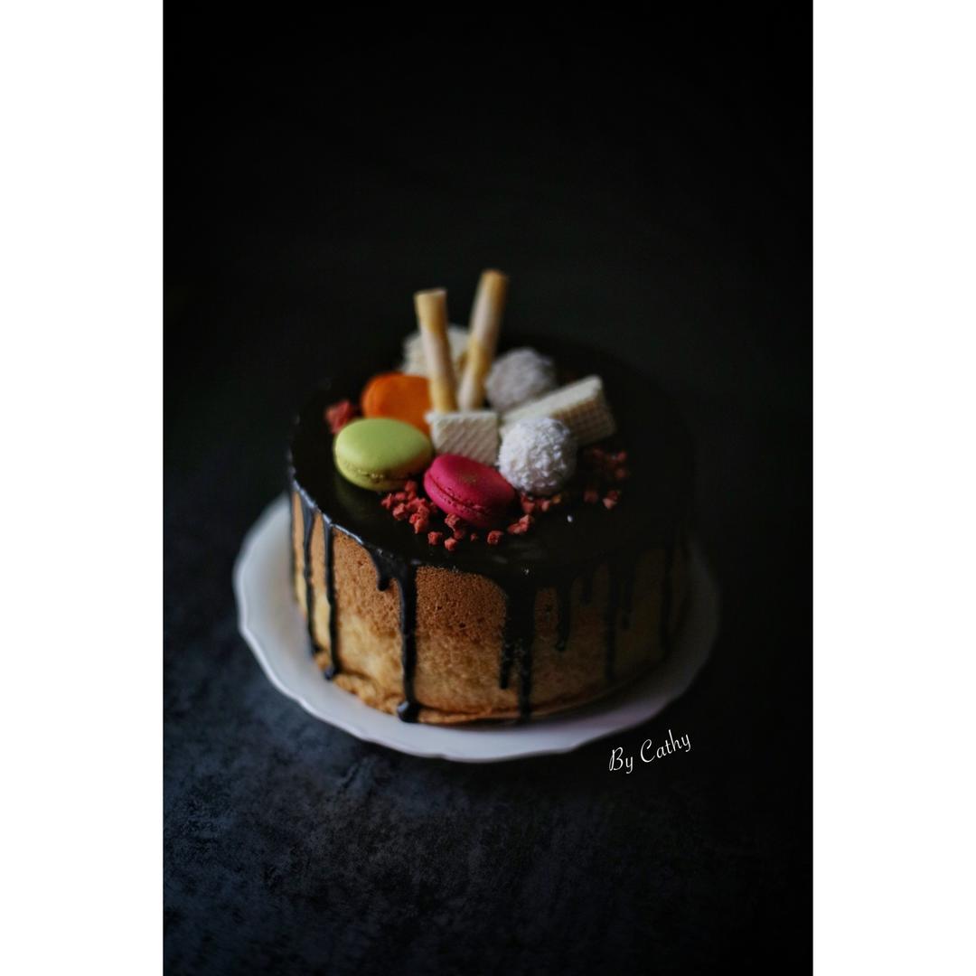 今天是我娘的生日,昨晚连夜做了这个蛋糕,今天一早脱模,中午赶回家做淋面、装饰、拍照……