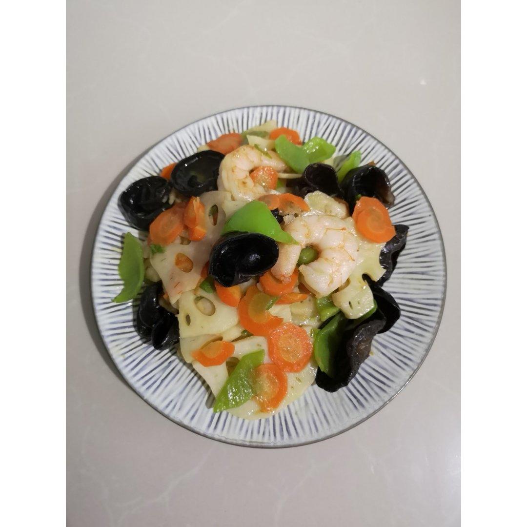 虾仁炒藕片。
