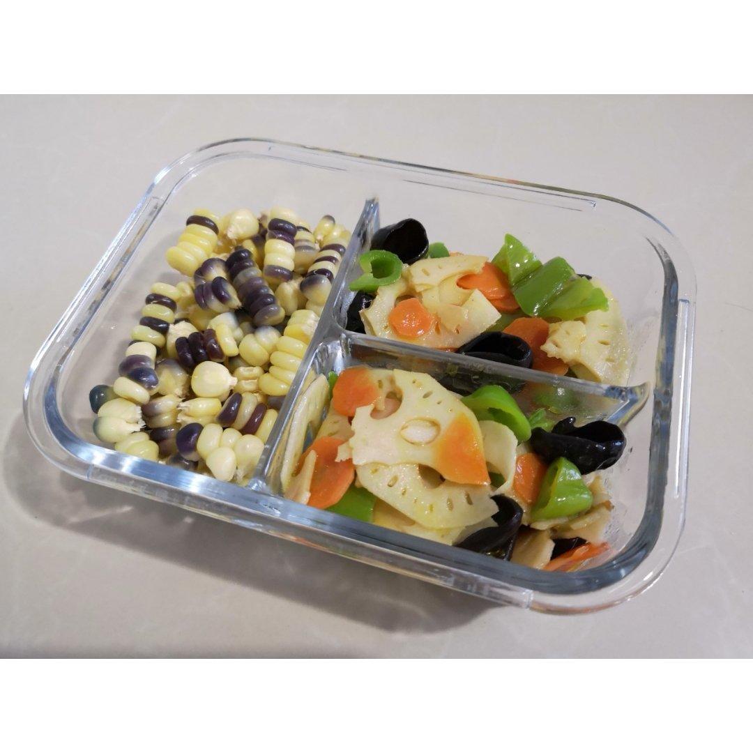 玉米,炒藕片。