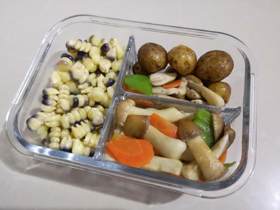 玉米,炒松茸,酱小土豆。